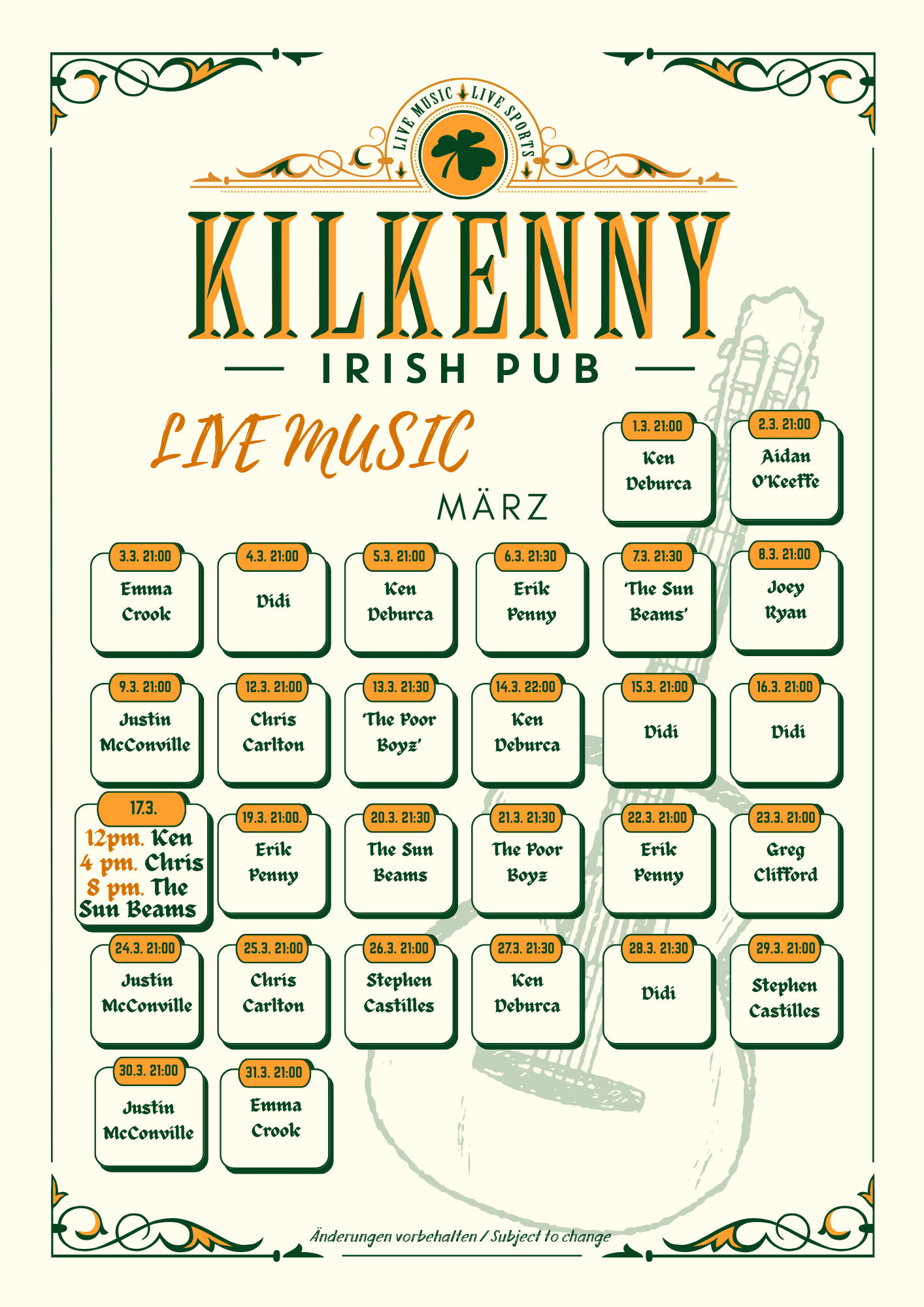 Wir behalten uns vor, Änderungen am Sport- und Musikprogramm vorzunehmen.